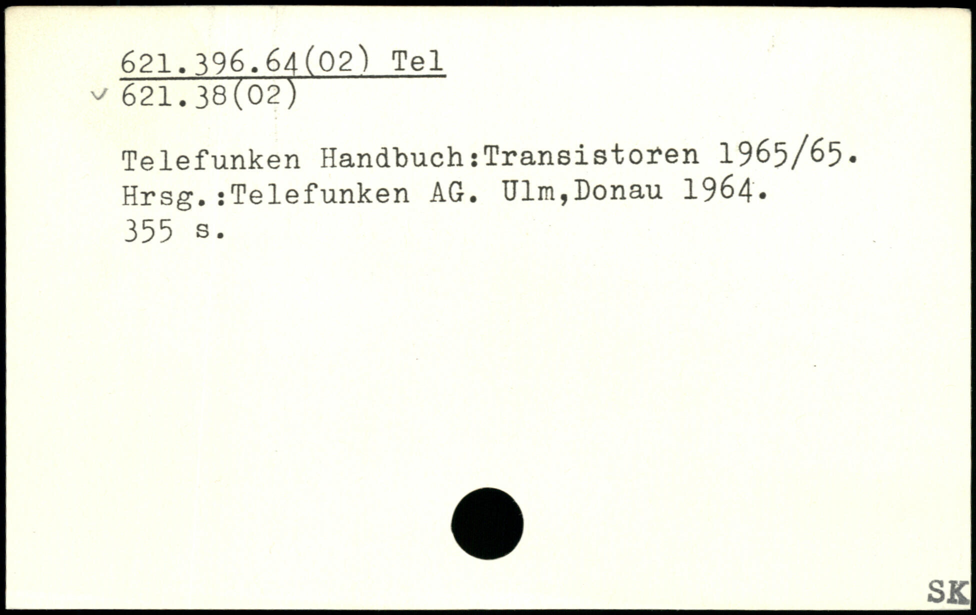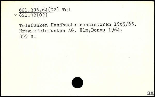 Telefunken Handbuch:Transistohen 1965/65. Hrsg.:Telefunken AG. Ulm,Donau 1964.