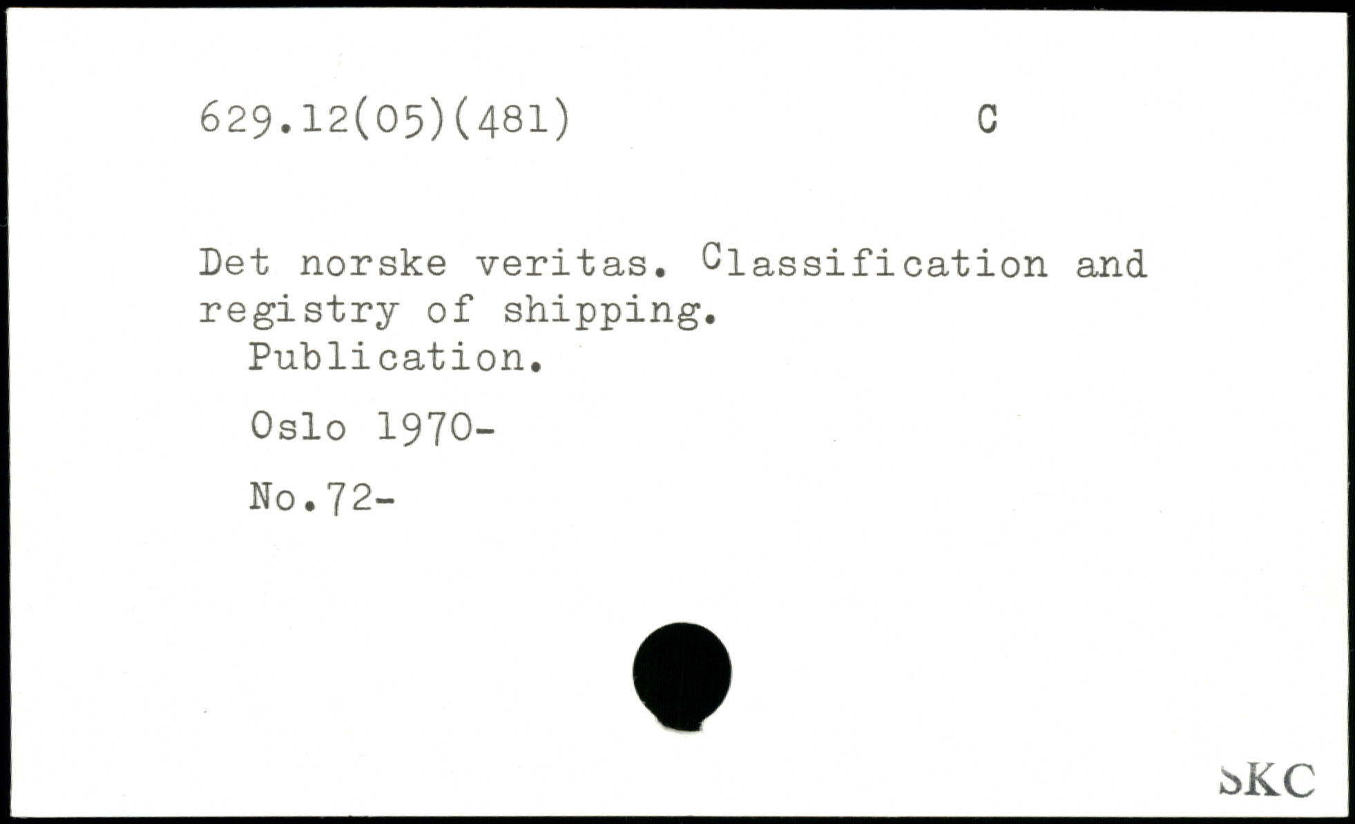 Let norske veritas. Glassification and registry of shipping. Publication. Oslo 1970- No.72- ùKC