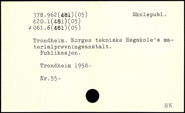 Trondheim, Norges tekniske Høgskole■s materialprøvningsanstalt , Publikasjon