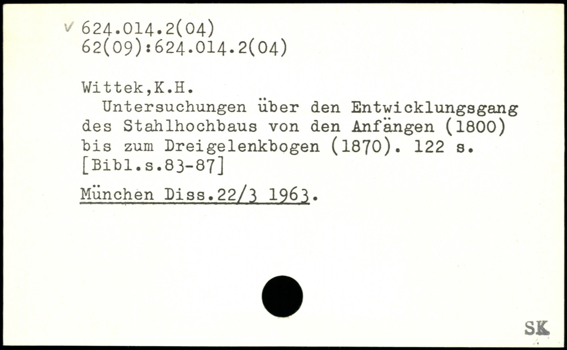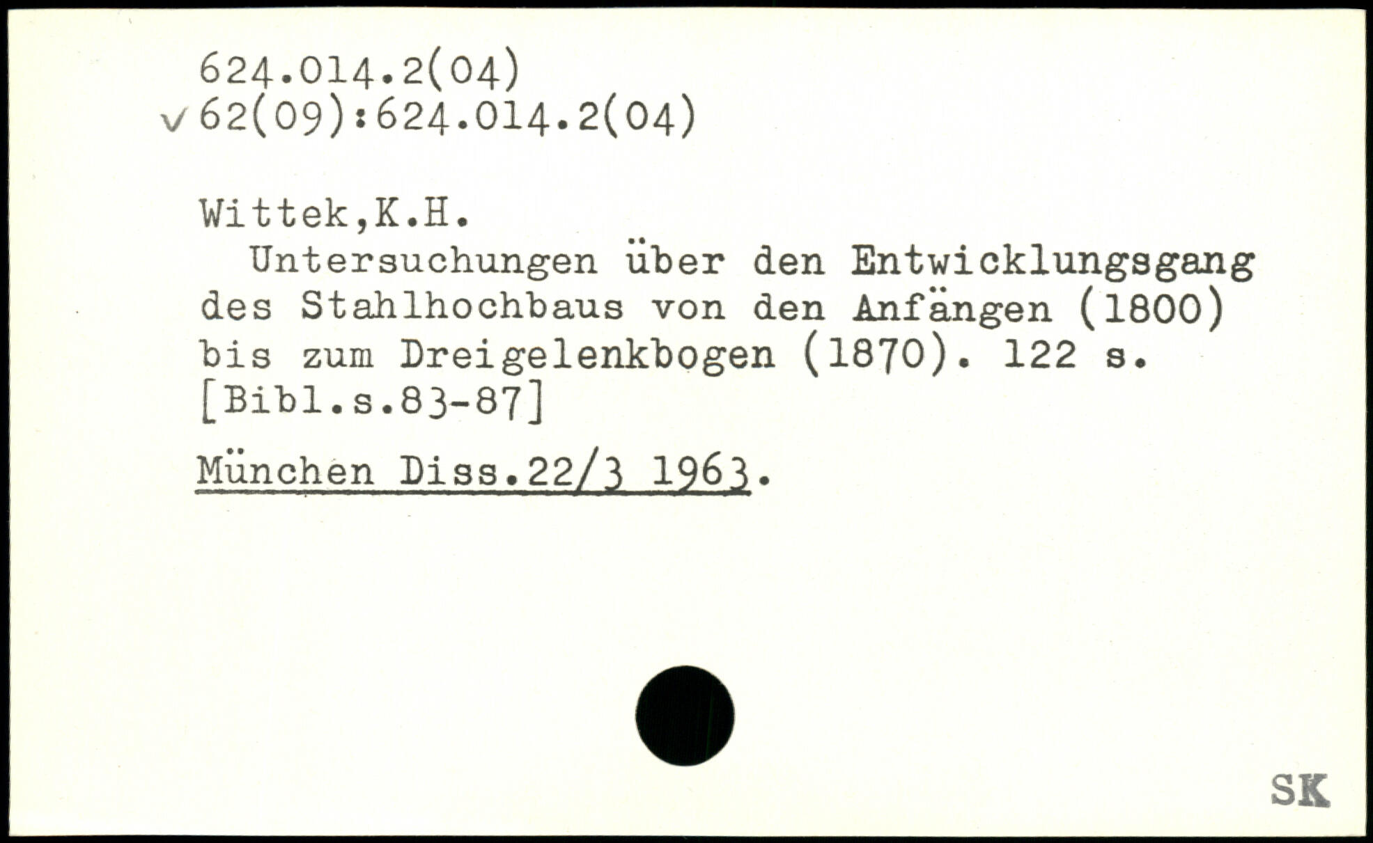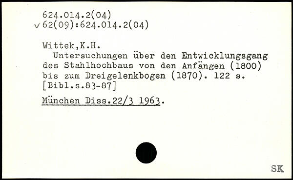 Untersuchungen über den Entwicklungsgang des Stahlhochbaus von den Anfängen (1800) bis zum Dreigelenkbogen (1870).