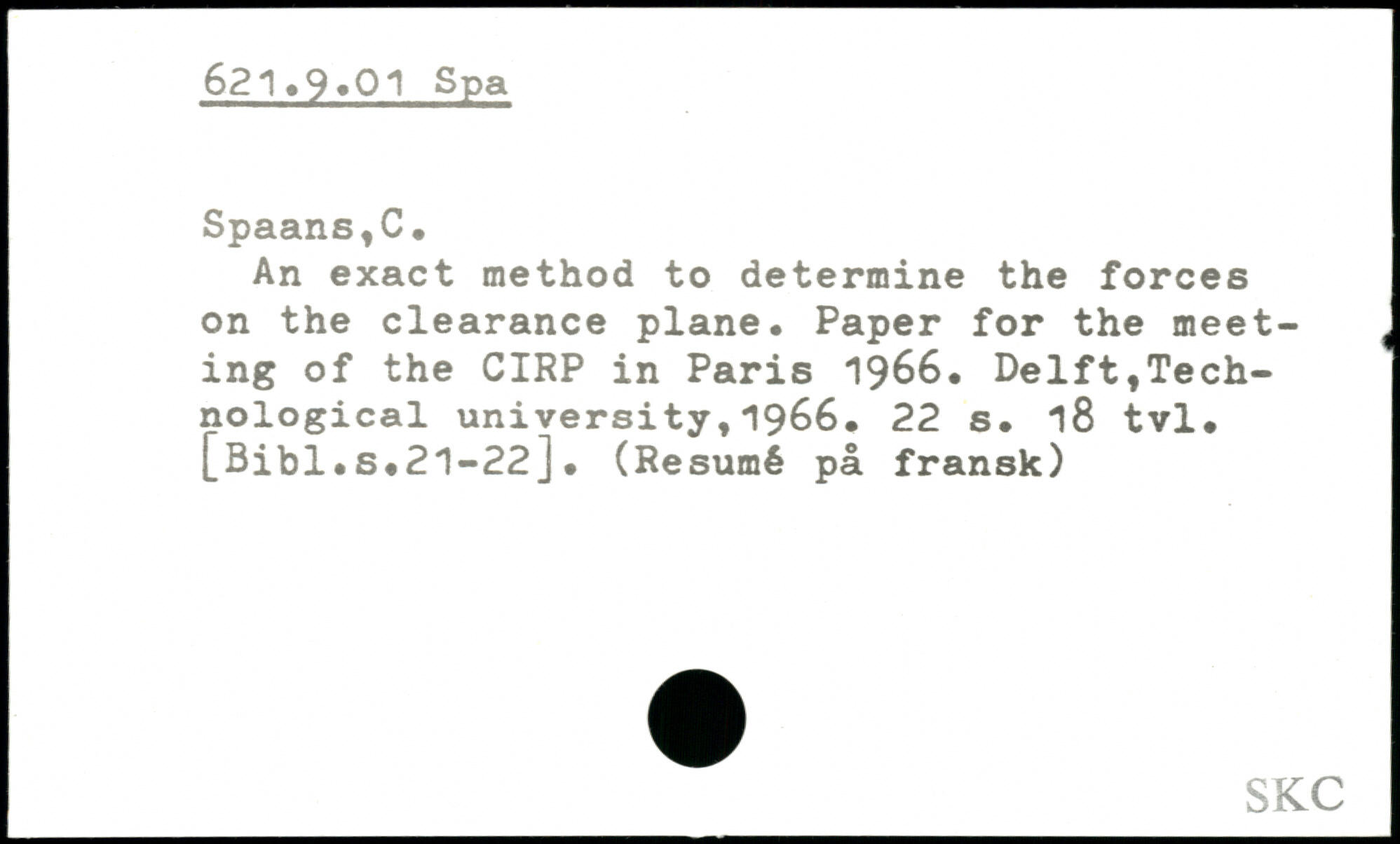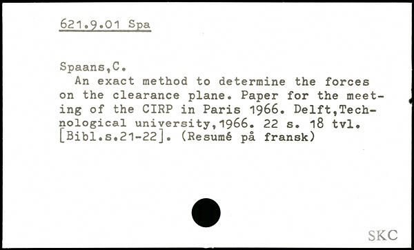 An exact method to determine the forces on the clearance plane. Paper for the meet-ing of the CIRP in