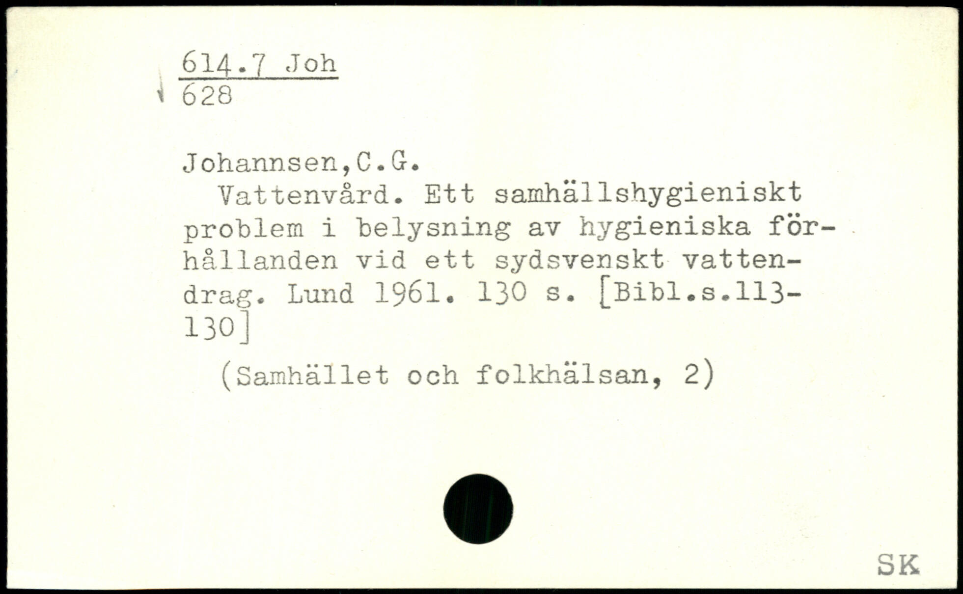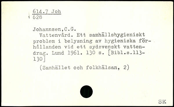 Vattenvård. Ett samhällshygieniskt problem i belysning av hygieniska förhållanden vid ett sydsvenskt vattendrag. Lund 1961.