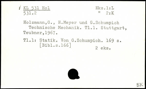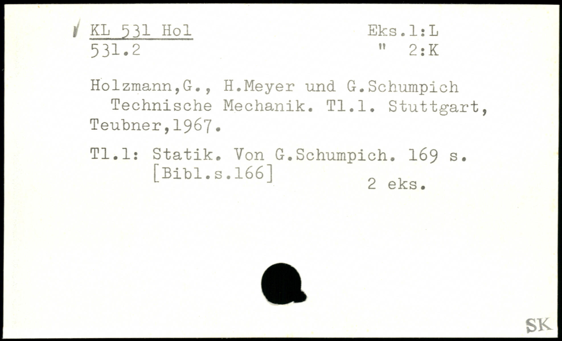 Holzmann,G. , H.Meyer und G.Schumpich Technische Mechanik. Tl.l.
