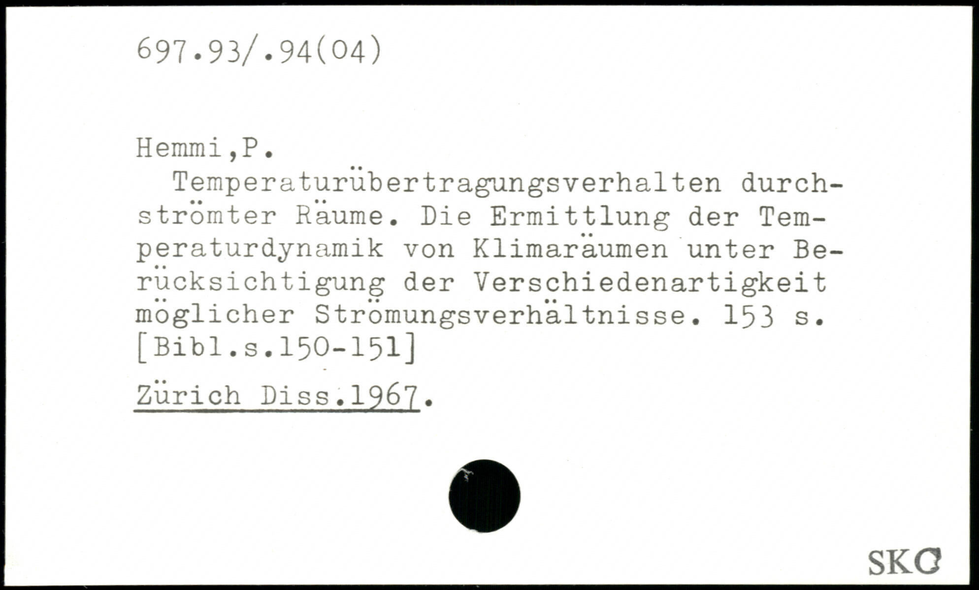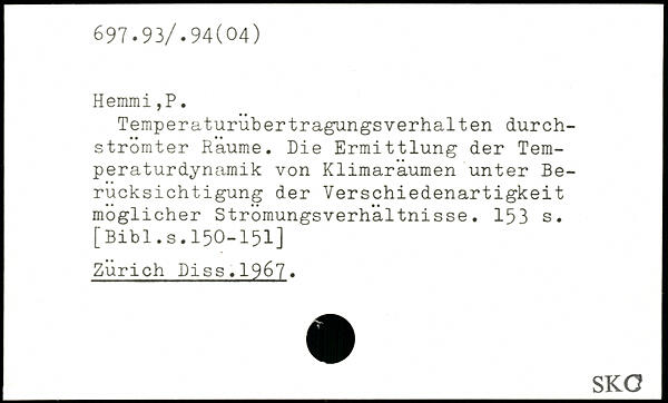 Temperaturübertragungsverhalten durch-strömter Raume. Die Ermittlung der Temperaturdynamik von Klimaraumen unter Berücksichtigung der Verschiedenartigkeit möglicher Stromungsverhaltnisse.