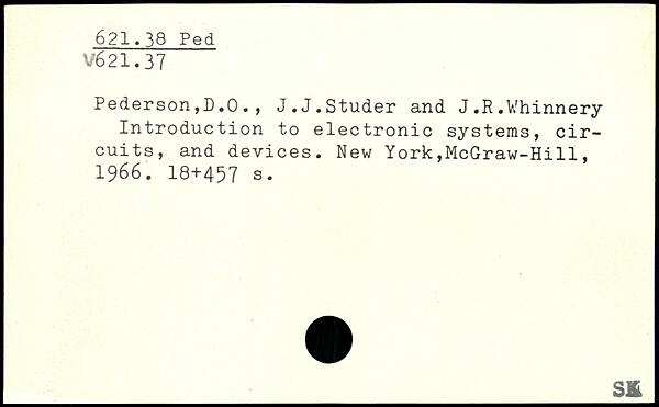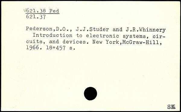 Pederson,D.O., J.J.Studer and J.R.Vhinnery Introduction to electronic systems, circuits, and devices.
