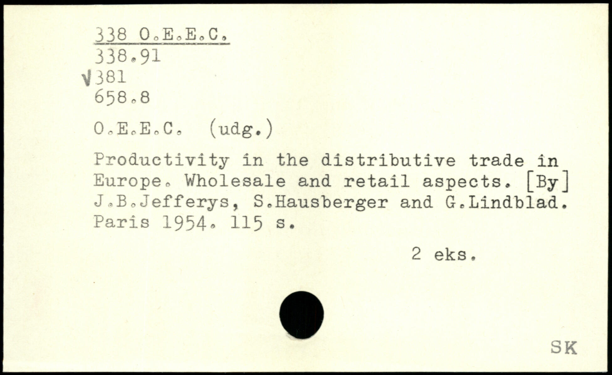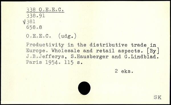 Productivity in the distributive trade in Europe, Wholesale and retail aspects, [By] J,B0Jefferys, ScHausberger and G,Lindblad.