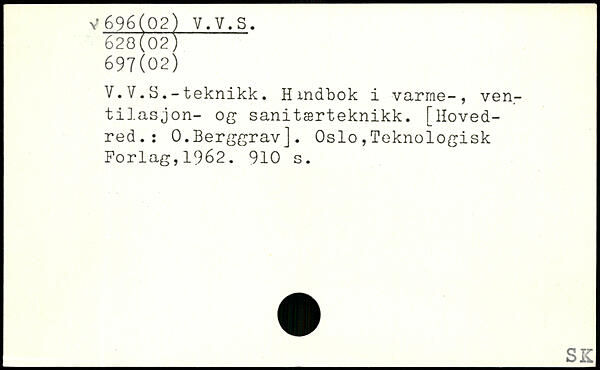 V.V.S.-teknikk. Hmdbok i varme-, ven-tilasjon- og sanitærteknikk.