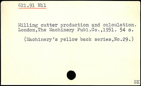 M1111ng cutter production and calculation. London,The Machinery Publ.Go.,1951.