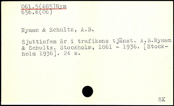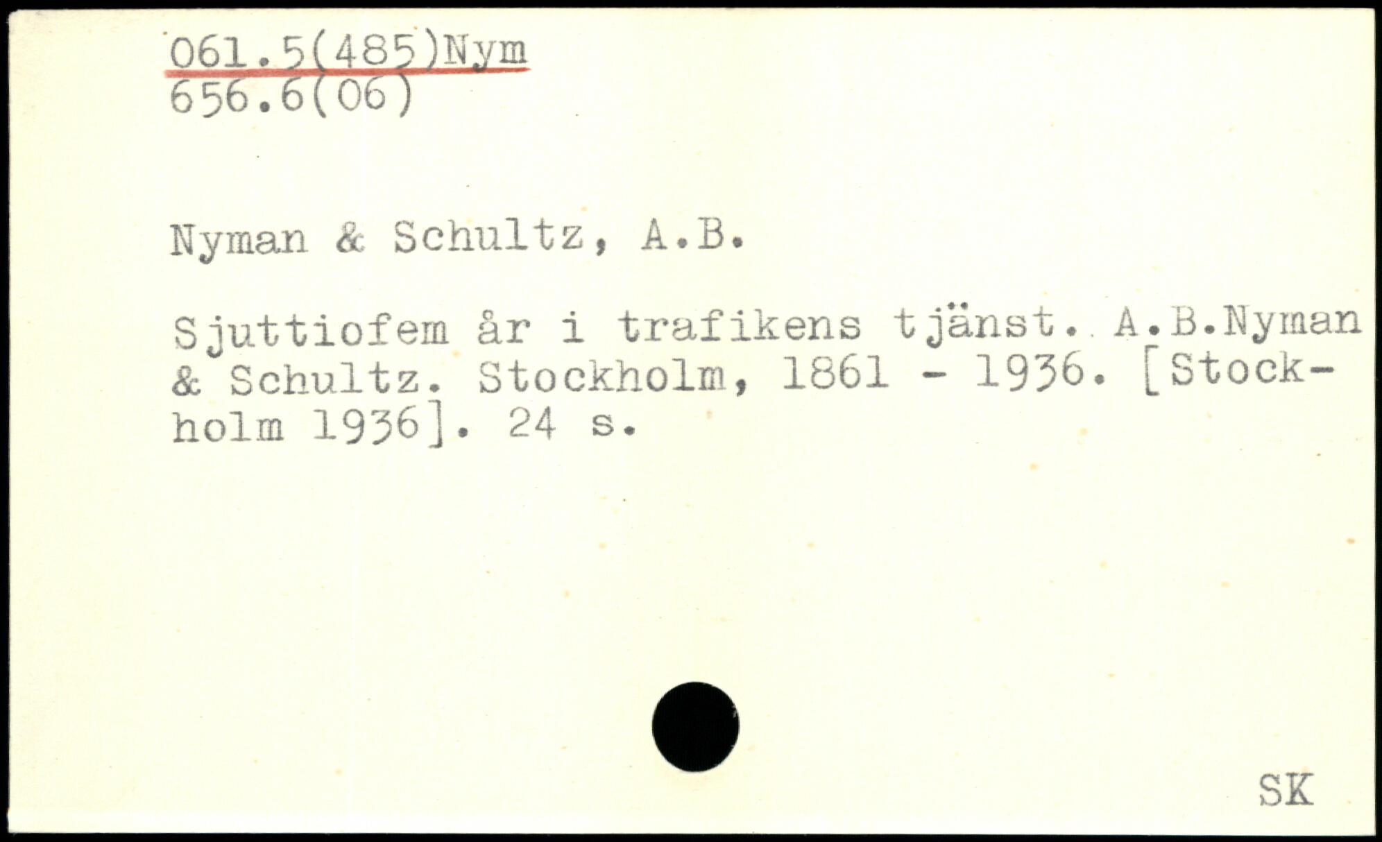 Sjuttiofem år i trafikens tjänst.. A.B.Nyman & Schultz. Stockholm, 1861 - 1936.