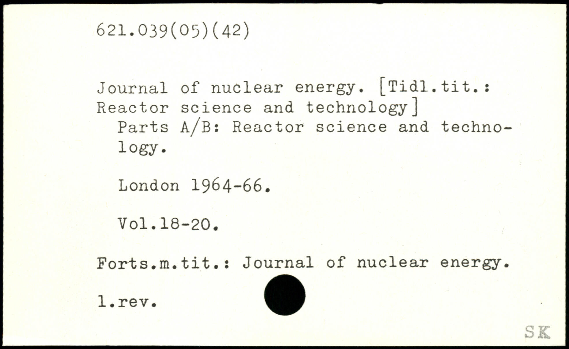 Journal of nuclear energy. [Tidl.tit.s Reactor science and technology] Parts A/Bs Reactor science and technology.