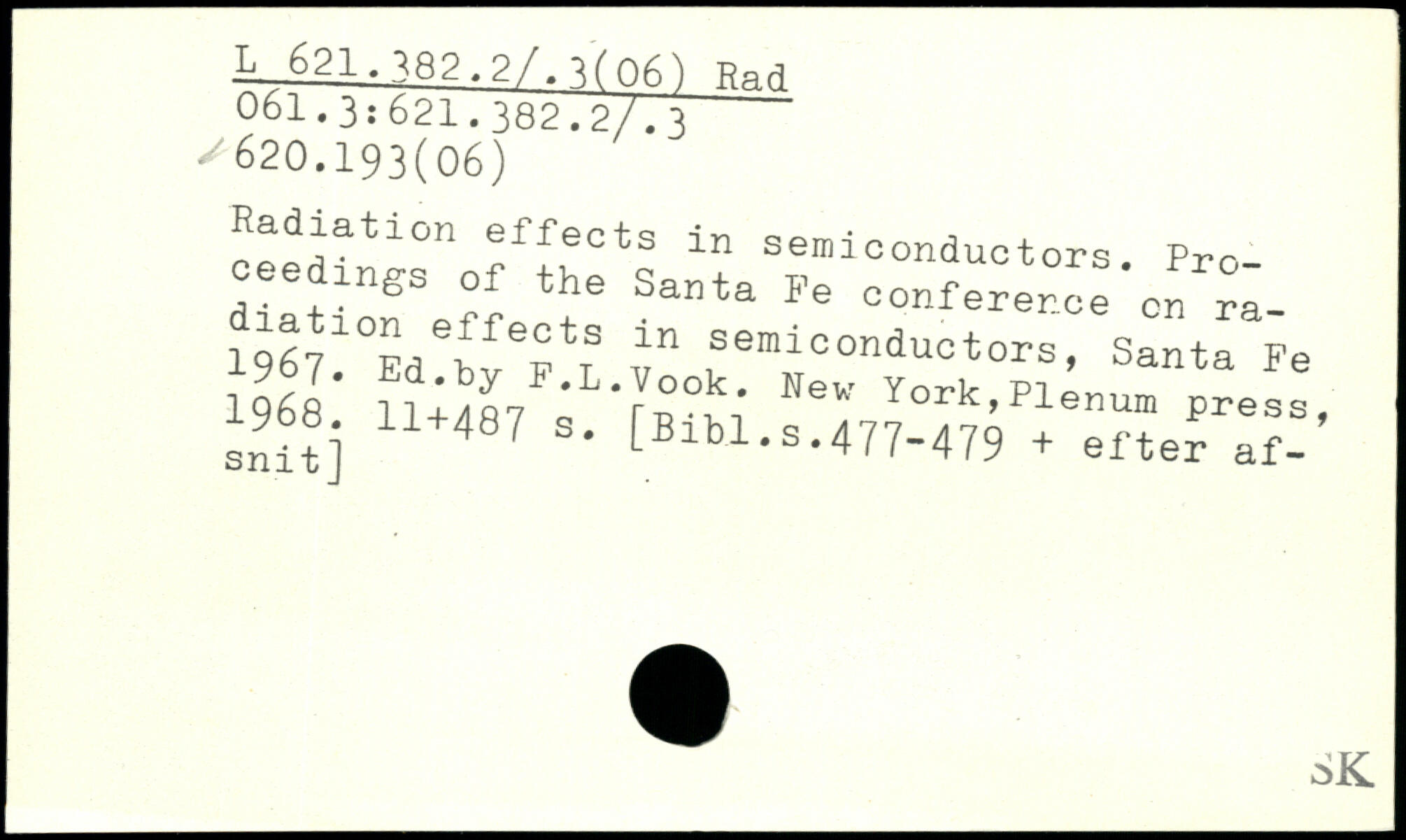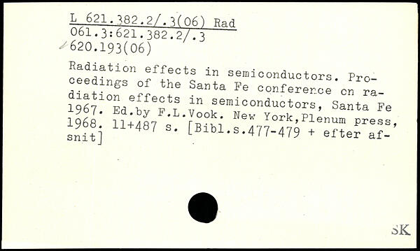 Radiation effects in semiconductors. Pro oeedings of the Santa Fe conference cn ra- l^^Ed^y^L v" ®em;jconductors, Santa Fe w|.uÆ,’qs&.: