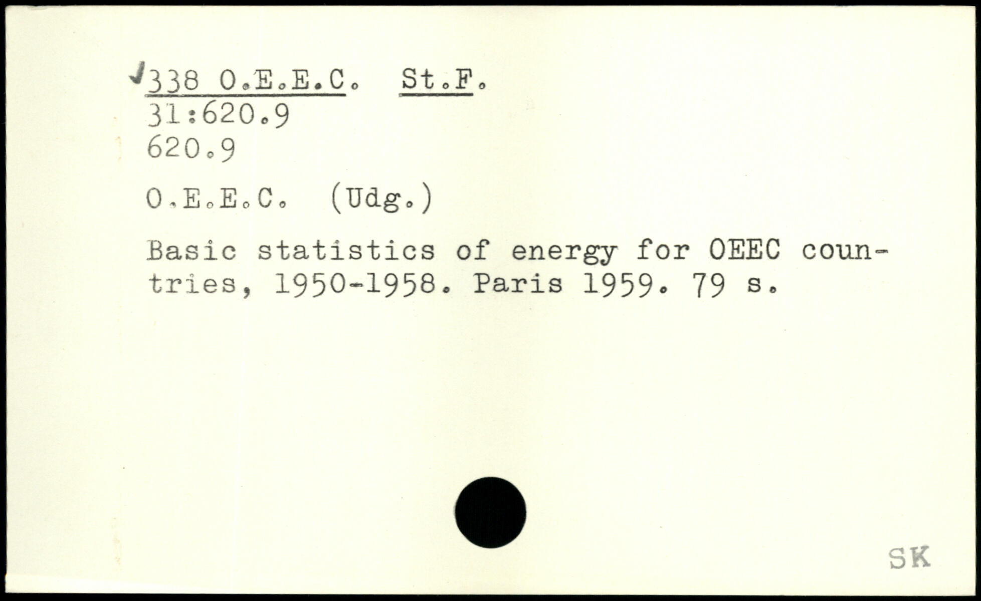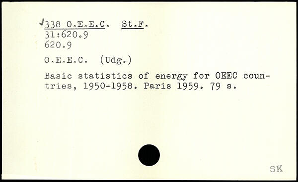 Basic statistics of energy for OEEC countries, 1950-1958.