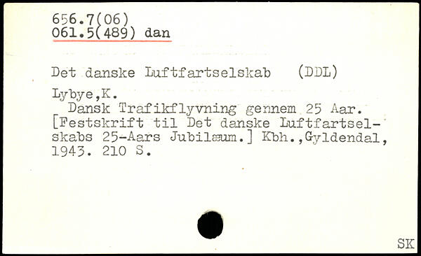 Det danske Luftfartselskab (DDL) Lybye,K. Dansk Trafikflyvning gennem 25 Aar. [Festskrift til Det danske Luftfartselskabs 25-Aars Jubilæum.]