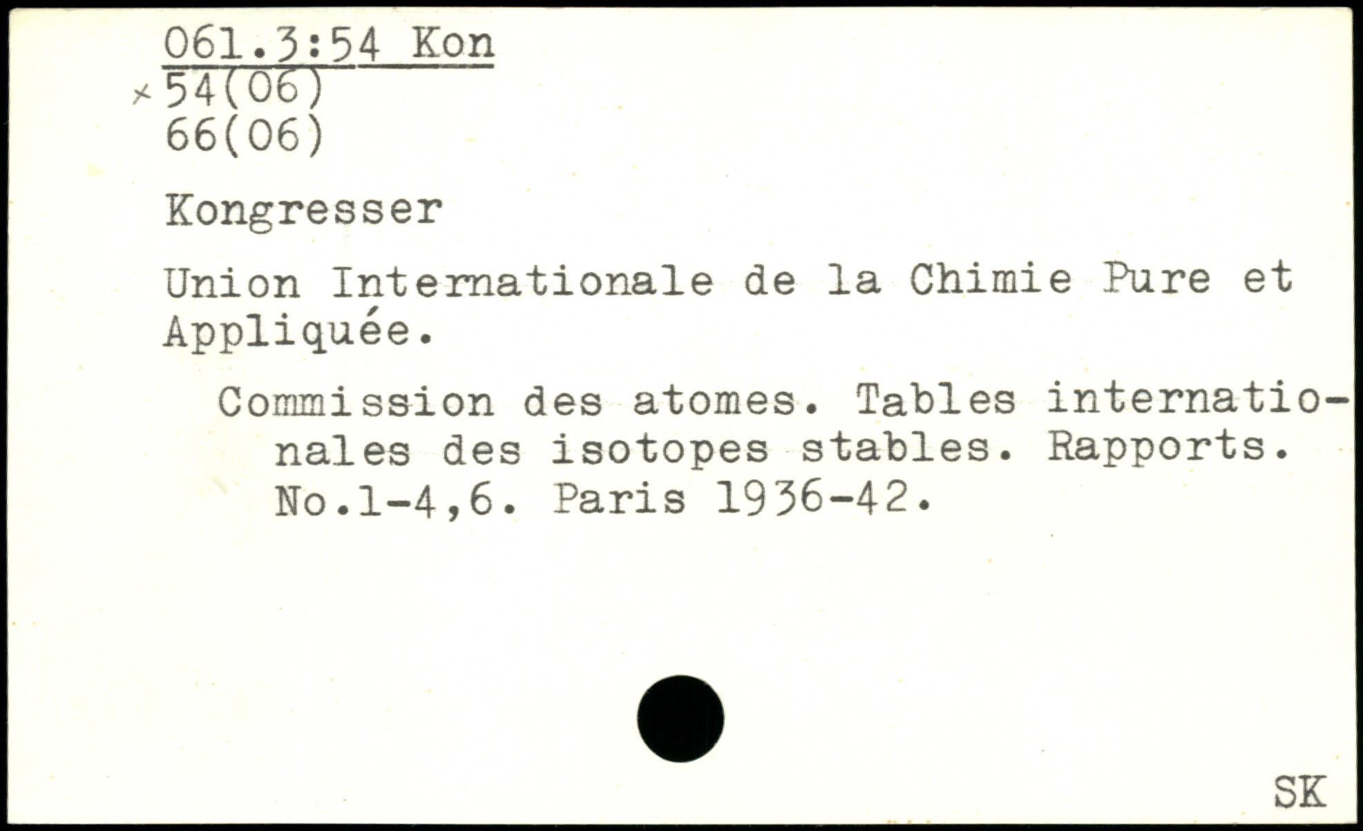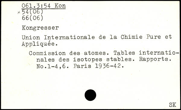 Union Internationale de la Chimie Pure et Appliquée. Commission des atomes. Tables internationales des isotopes stables. Rapports. No.1-4,6.