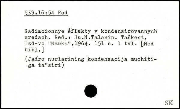 Radiacionnye êffekty v kondensirovannych sredach. Red.: Ju.N.Talanin. Taskent, Izd-vo MNauka",1964.