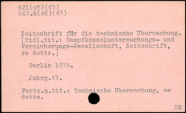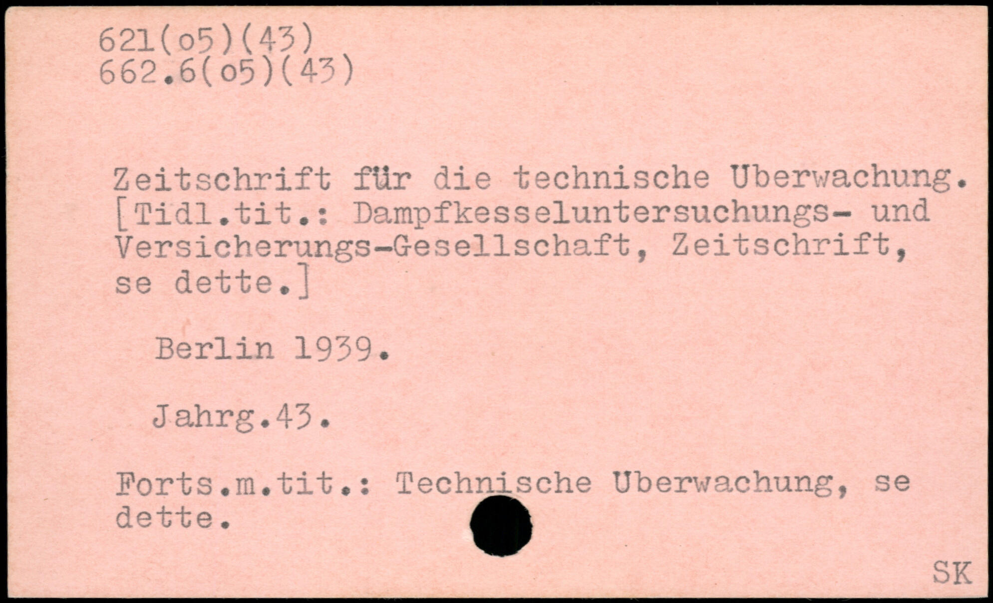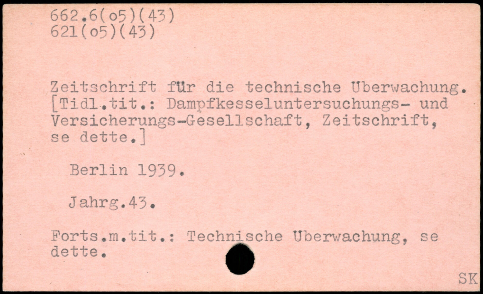 Zeitschrift für die technische Überwachung, [Tidl.tit.: Dampfkesseluntersuchungs- und Versicherungs-Gesellschaft, Zeitschrift, se dette.]
