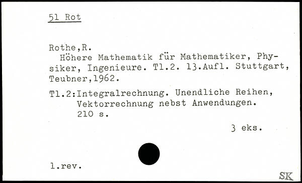 Höhere Mathematik für Mathematiker, Physiker, Ingenieure. TI.2. 13-Aufl.