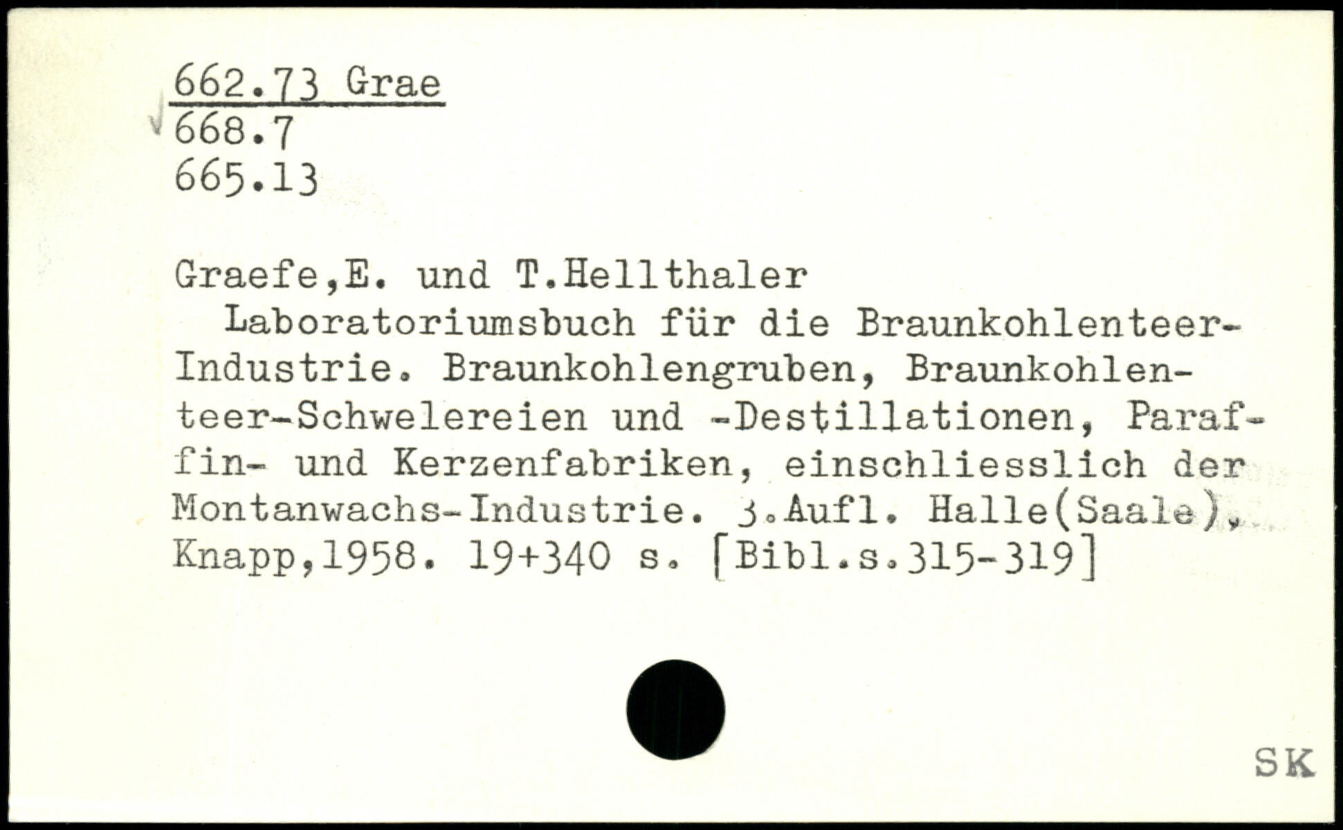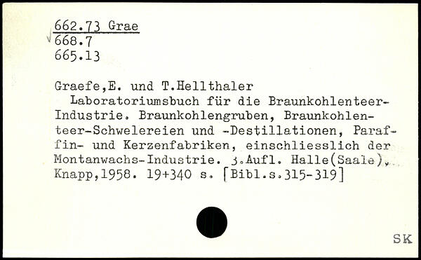 Laboratoriumsbuch für die Braunkohlenteer-Industrie. Braunkohlengruben, Braunkohlenteer-Schwelereien und -Destillationen, Paraffin- und Kerzenfabriken, einschliesslich der Montanwachs-Industrie. j.Aufl. Halle(Saale)y Knapp,1958. I9+34O s.