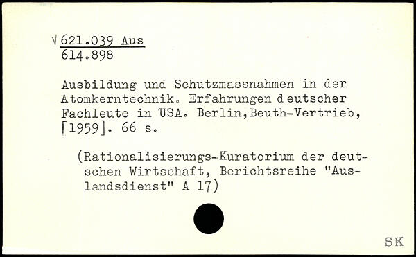 Ausbildung und Schutzmassnahmen in der Atomkerntechniko Erfahrungen deutscher Fachleute in TJSA, Berlin,Beuth-Vertrieb, r1959]-