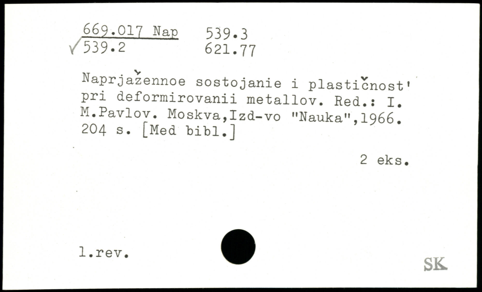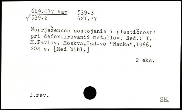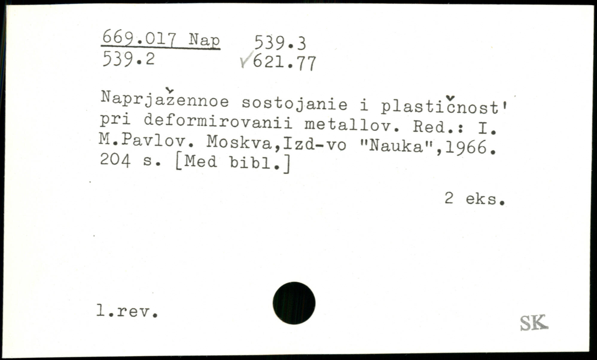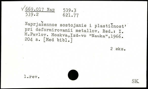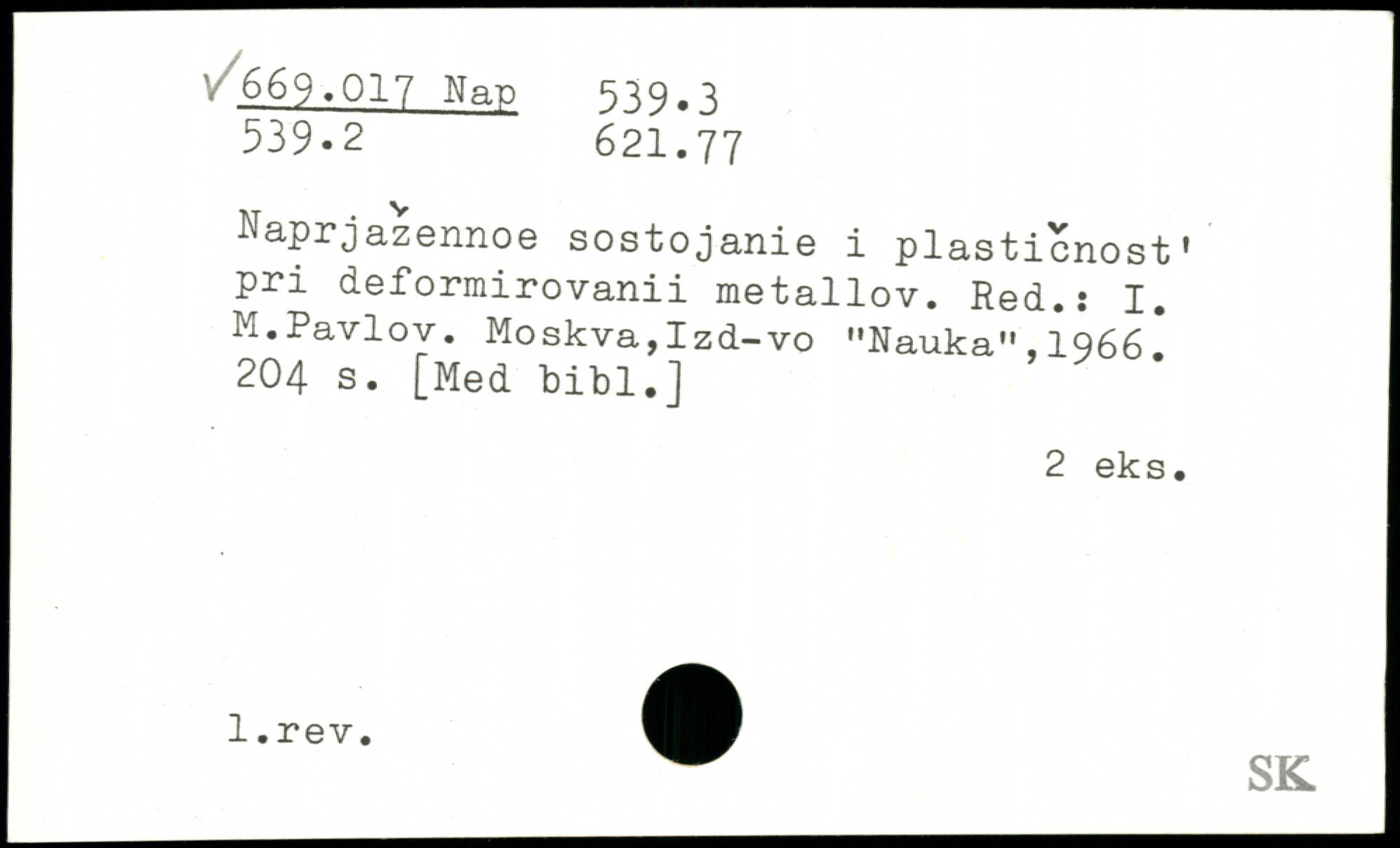 Naprjazennoe sostojanie i plasticnost' pri deformirovanii metallov. Red.: I. M.Pavlov. Moskva,Izd-vo "Nauka",1966.