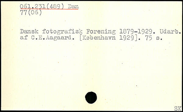 Dansk fotografisk Forening 1879t1929. Udarb. af C.E.Aagaard.