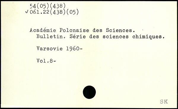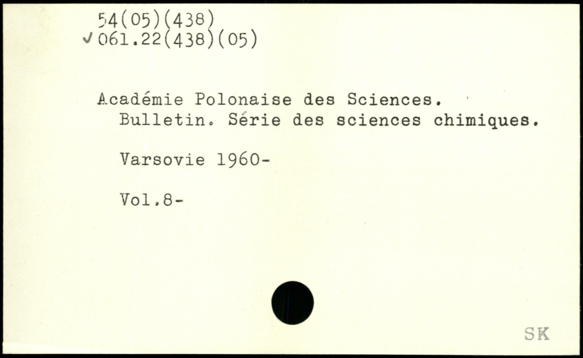 Académie Polonaise des Sciences. Bulletin. Série des sciences chimiques. Varsovie 1960-