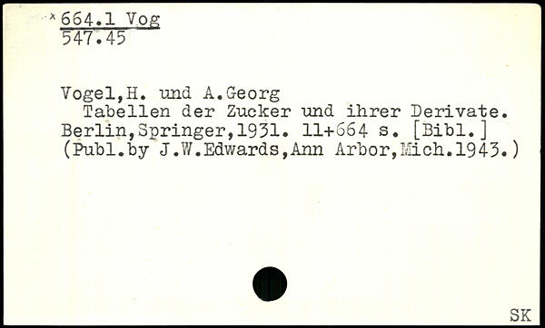 Vogel,H, und A.Georg Tabellen der Zucker und ihrer Derivate.