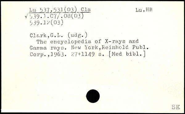 The encyclopedia of X-rays and Gairrna rays. New York,Reinhold Publ. Corp.,1963.