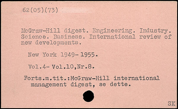 McGraw-Hill digest. Engineering. Industry. Science. Business. International review of new developments.