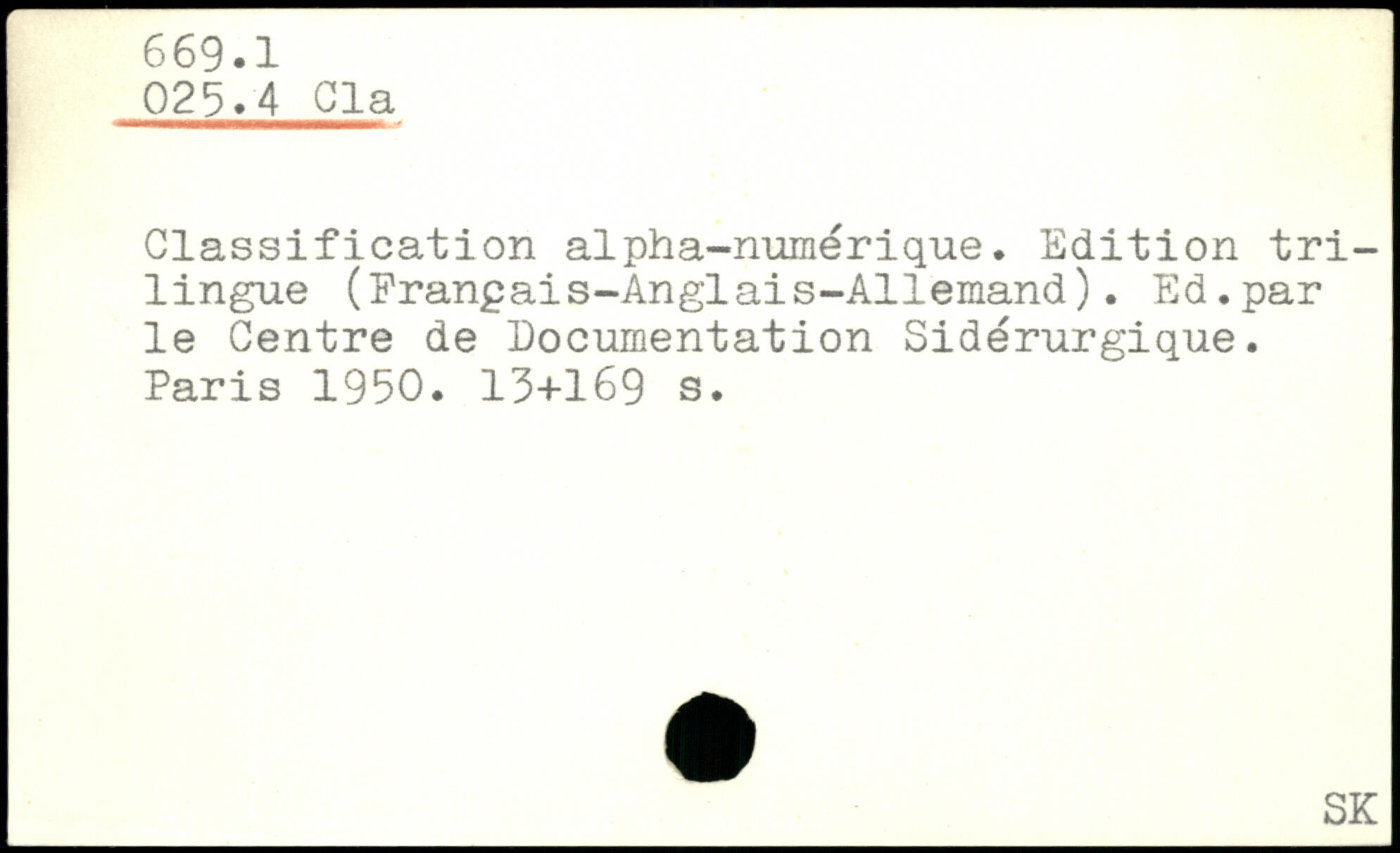 Classification alpha-numérique. Edition trilingue (Français-Anglais-Allemand). Ed.par le Centre de Documentation Sidérurgique.