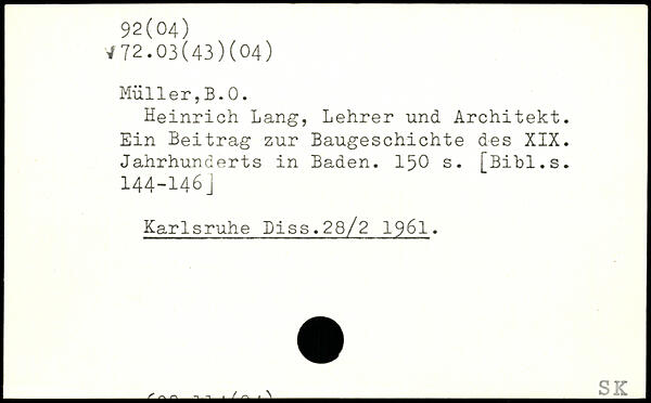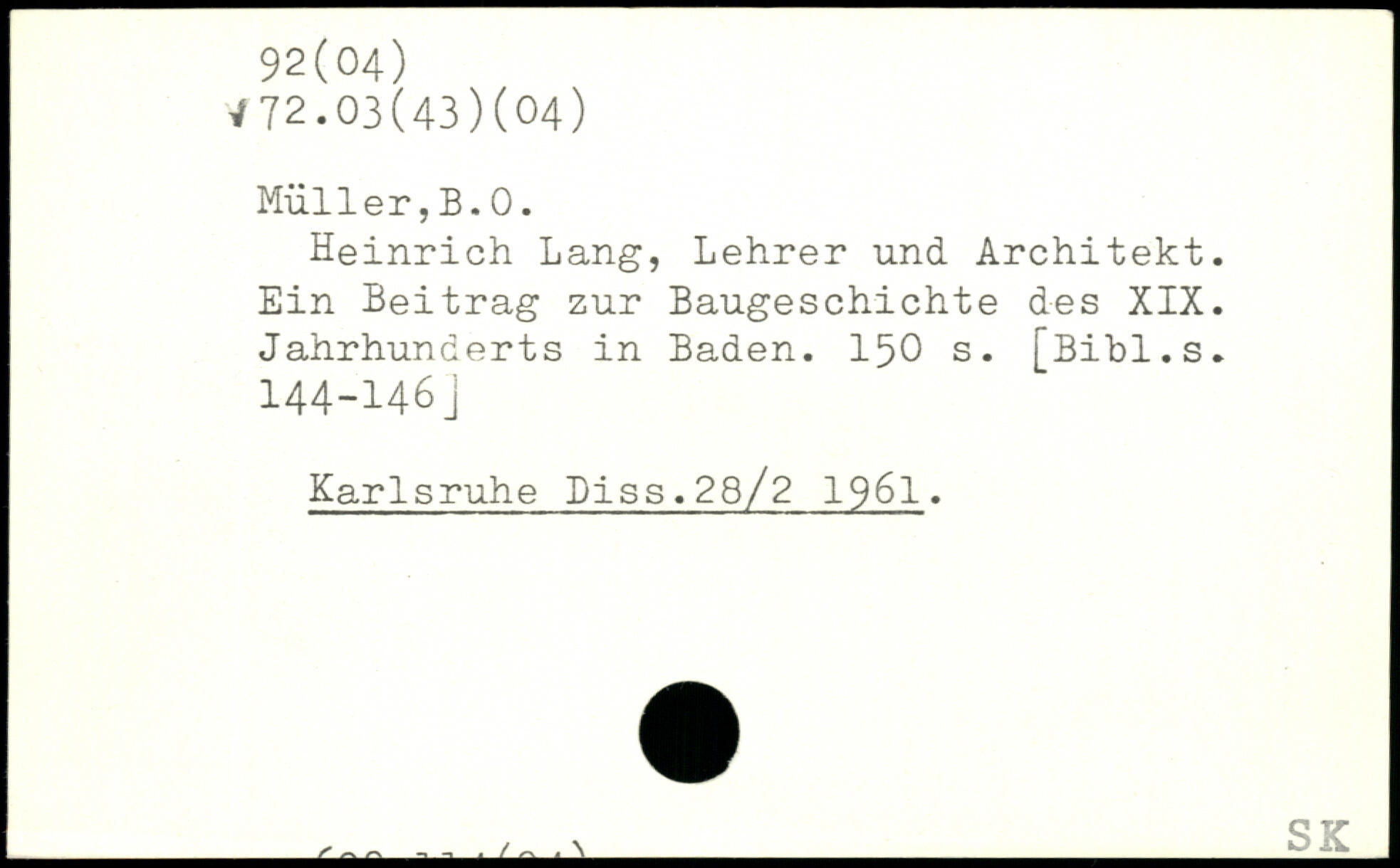 Heinrich Lang, Lehrer und Architekt. Ein Beitrag zur Baugeschichte des XIX. Jahrhunderts in Baden.