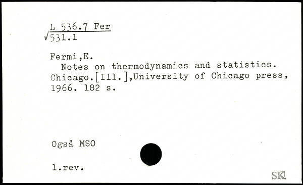 Notes on thermodynamics and statistics. Chicago.[ill.],University of Chicago press, 1966.