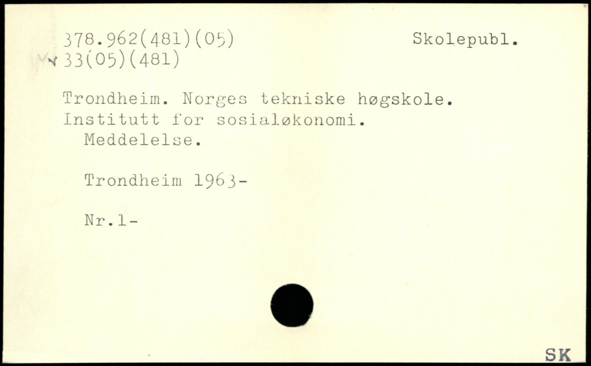 Trondheim. Norges tekniske høgskole, insti tut t i'or sosialøkonomi. Meddelelse.