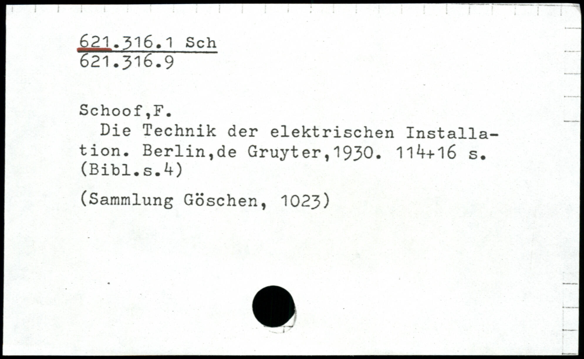 Die Technik der elektrischen Installation. Berlin,de Gruyter,1930. 11.f+l