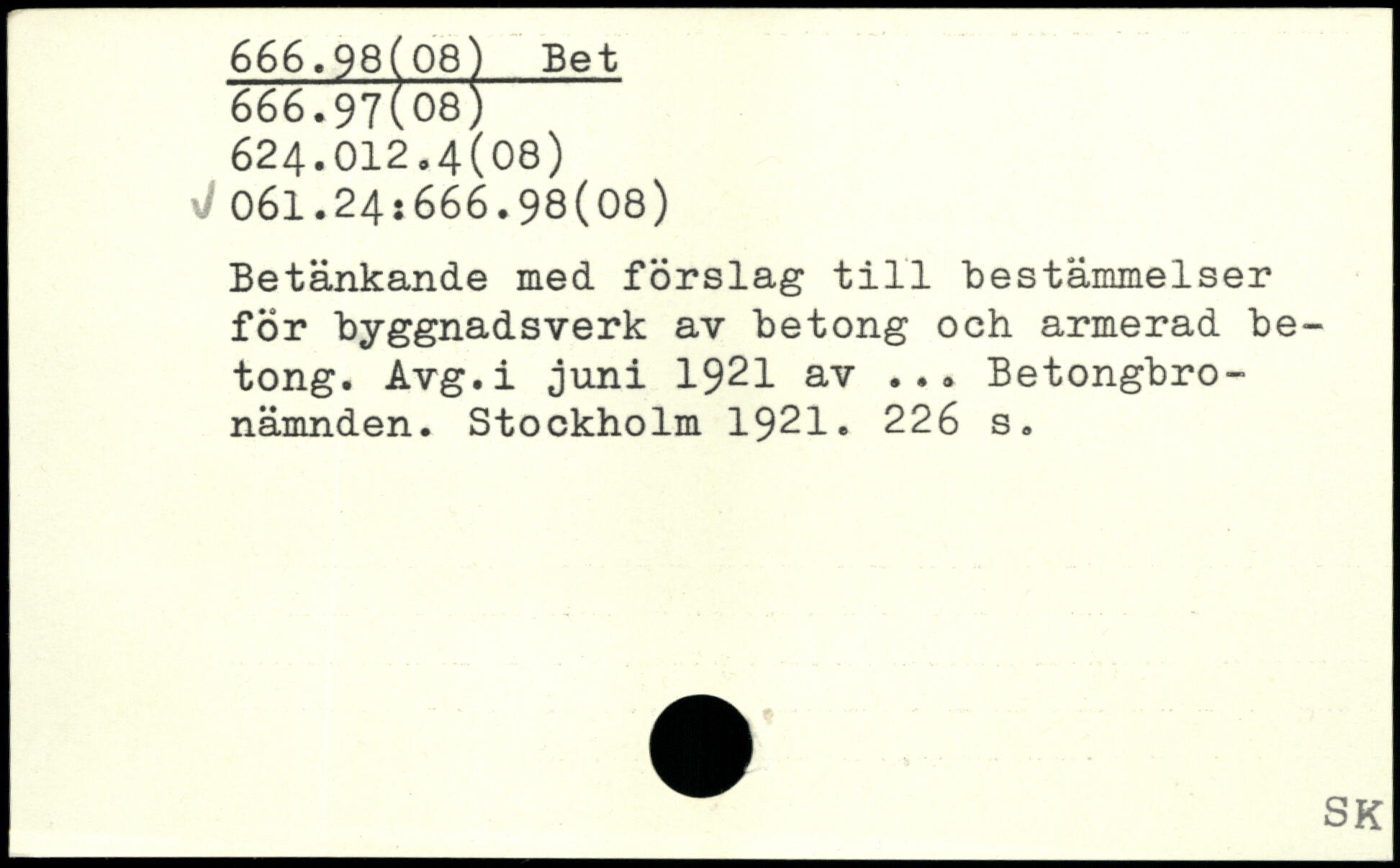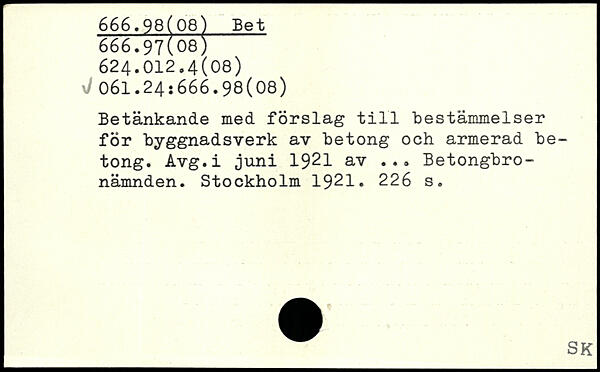 Betänkande med förslag till bestämmelser för byggnadsverk av betong och armerad betong. Avg.i juni 1921 av ... Betongbro-nämnden.