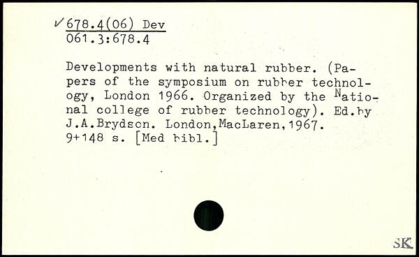 Developments with natural rubber. (Papers of the symposium on rubber technology