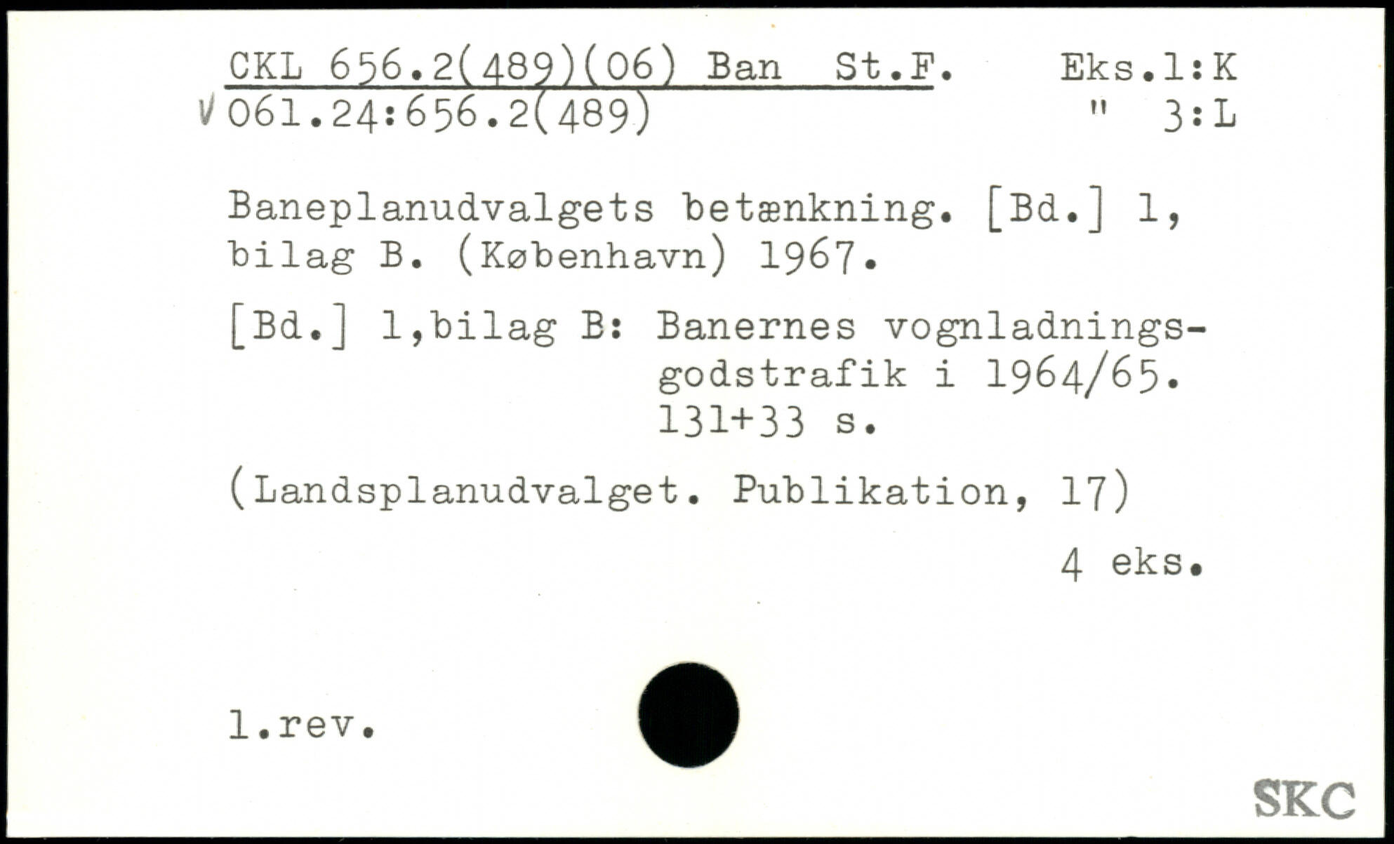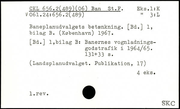 Baneplanudvalgets Betænkning. [Bd.] 1, Bilag B. (KøBenhavn) 19^7. [Bd.] 1,Bilag B: Banernes vognladningsgodstrafik i 1964/65