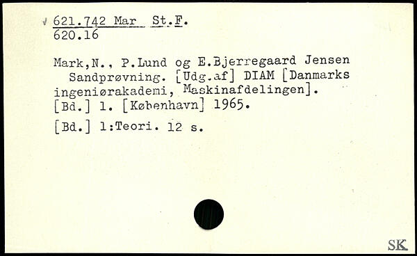 Mark,N., P.Lund og E.Bjerregaard Jensen Sandprøvning. [Udg.af] DIAM