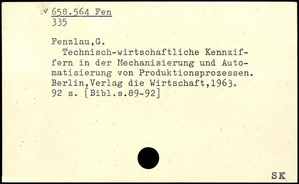 Technisch-wirtschaftliche Kennziffern in der Mechanisierung und Automatisierung von Produktionsprozessen. I
