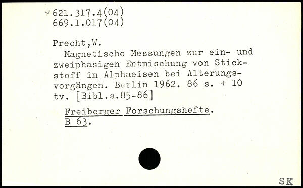 Magnetische Messungen zur ein- und zweiphasigen Entmischung von Stickstoff im Alphaeisen bei Alterungsvorgängen. Builin 1962.