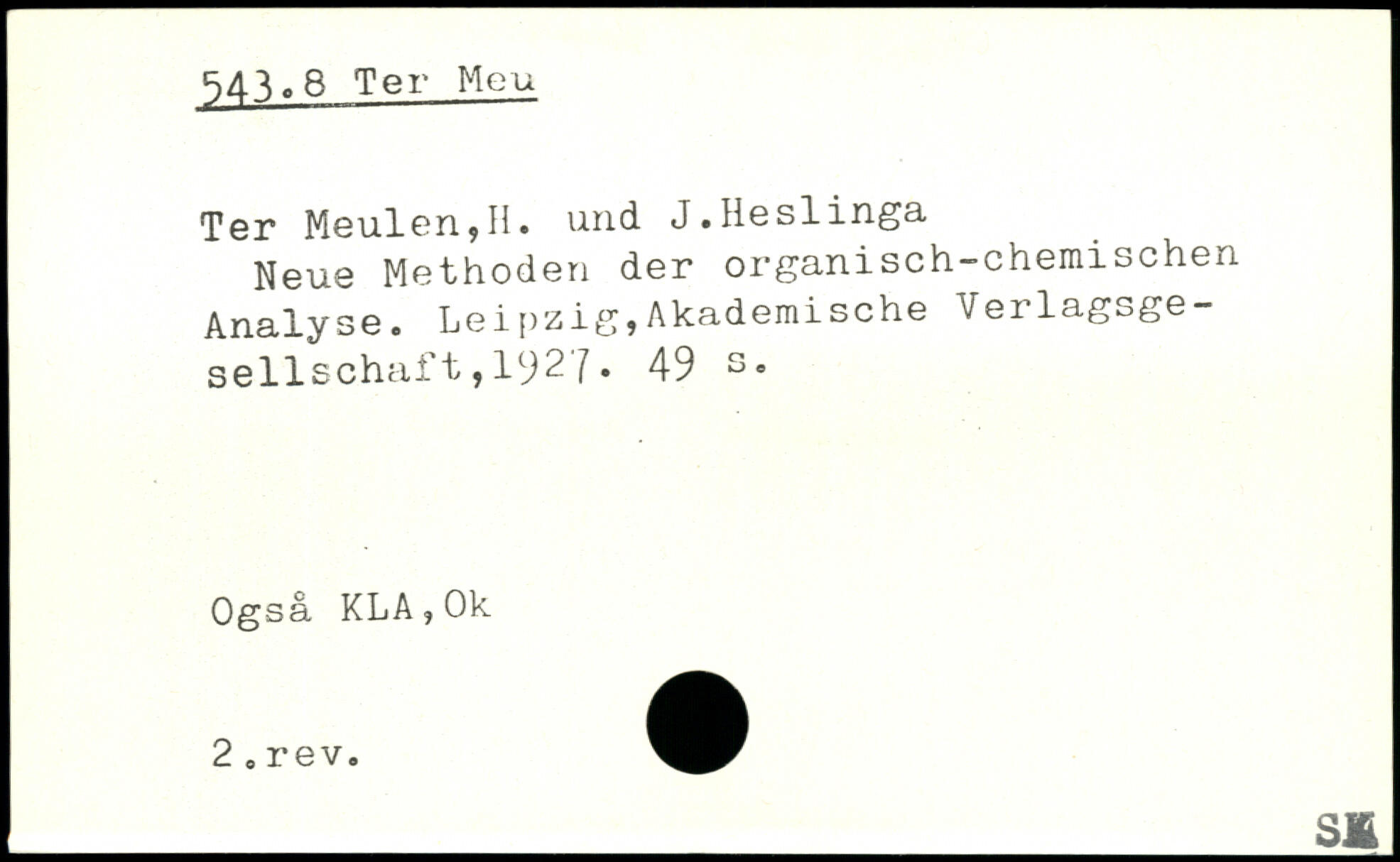Neue Methoden der organisch-chemischen Analyse. Leipzig,Akademische Verlagsge-sellschaft,192/.