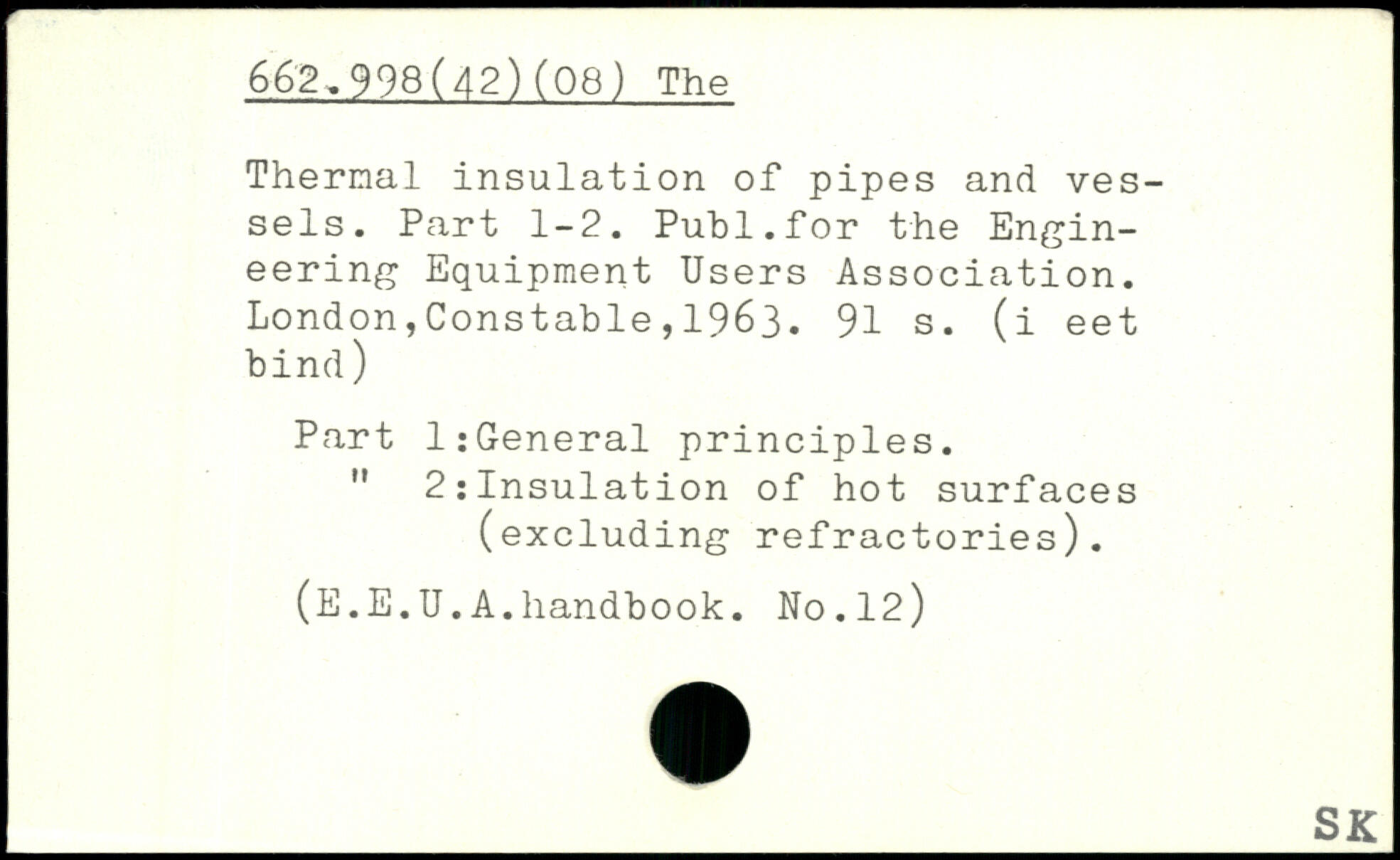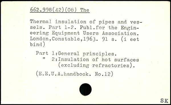 Thermal insulation of pipes and vessels. Part 1-2. Publ.for the Engineering Equipment Users Association.
