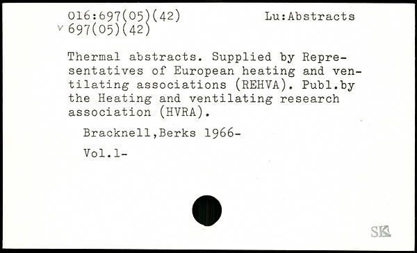 Thermal abstracts. Supplied by Representatives of European heating and ventilating associations (REHVA).
