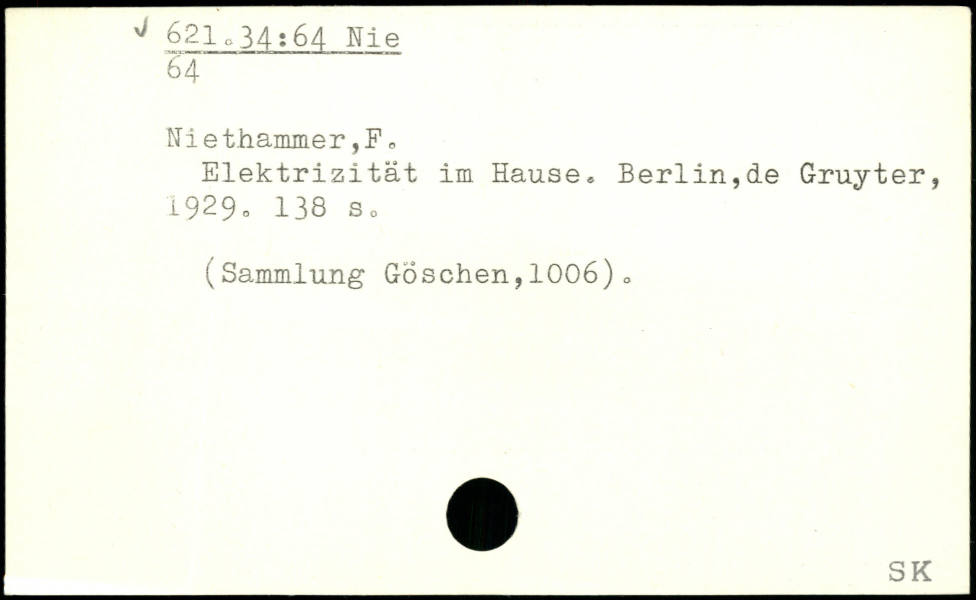 Elektrizität im Hause. Berlin,de Gruyter, 1929=