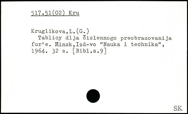 Tablicy dija cislennogo preobrazovanija fur'e. Minsk,Izd-vo "Nauka i technika", 1964.