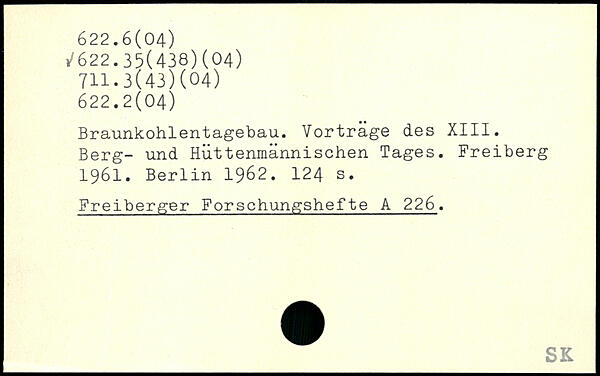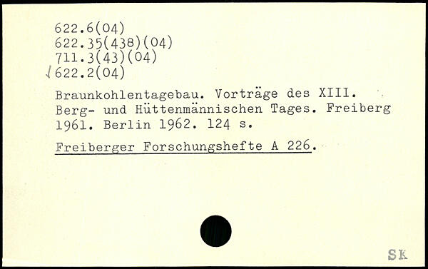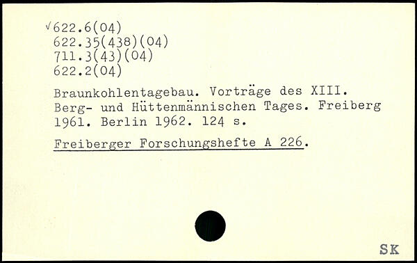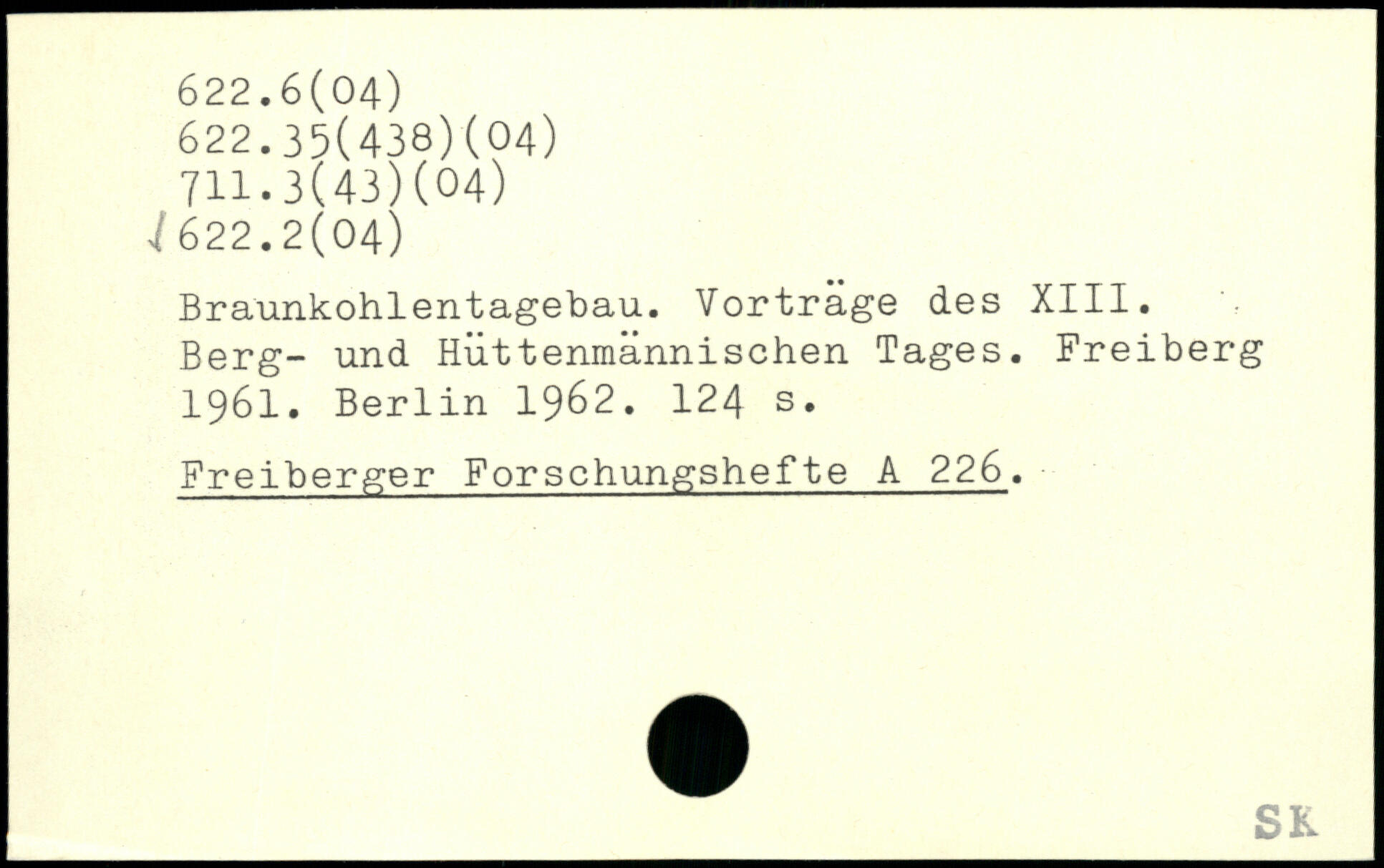 Braunkohlentagebau. Vorträge des XIII. Berg- und Hüttenmännischen Tages. Freiberg 1961.