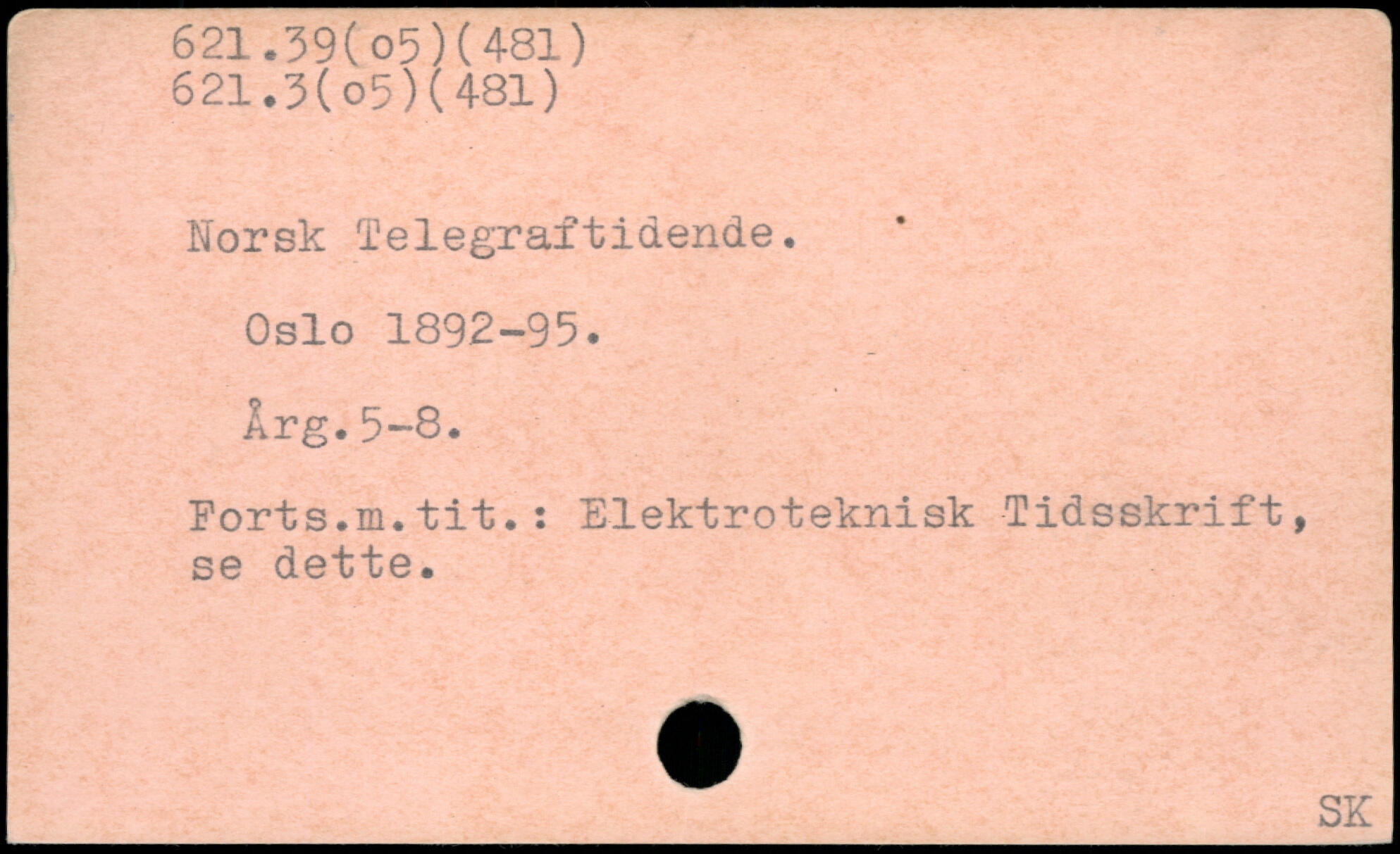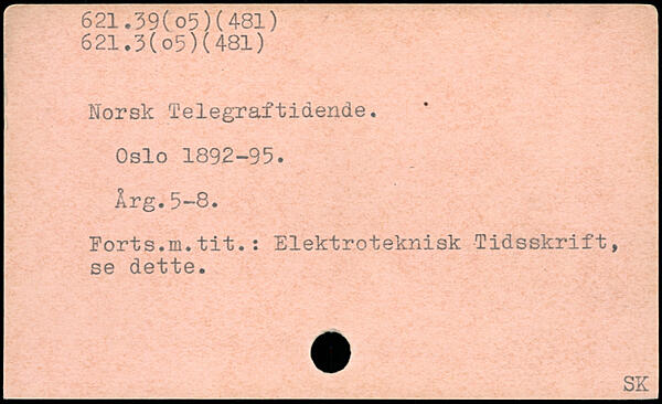Norsk Telegraftidende. Oslo 1892-95. Arg.5-8. Forts.m.tit.: Elektroteknisk Tidsskrift, se dette.