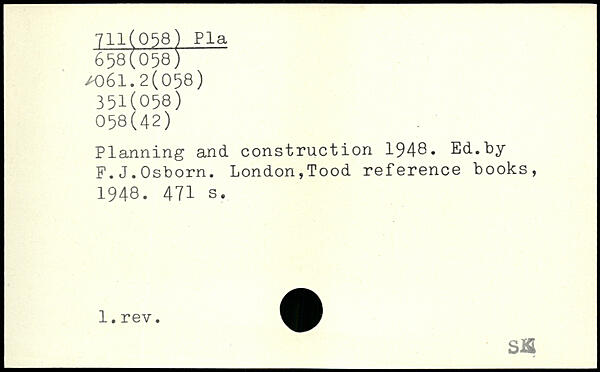 Planning and construction 1948. Ed.by F.J.Osborn.