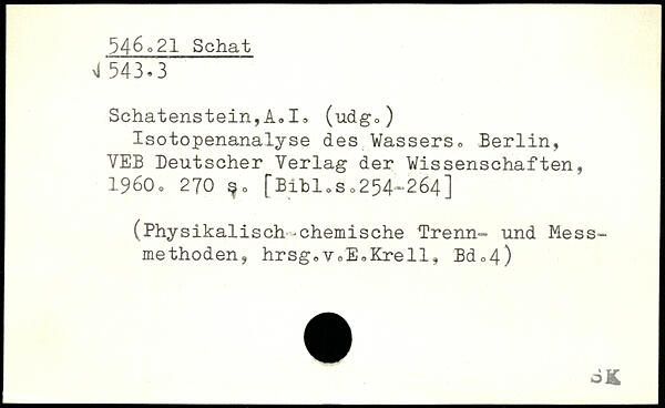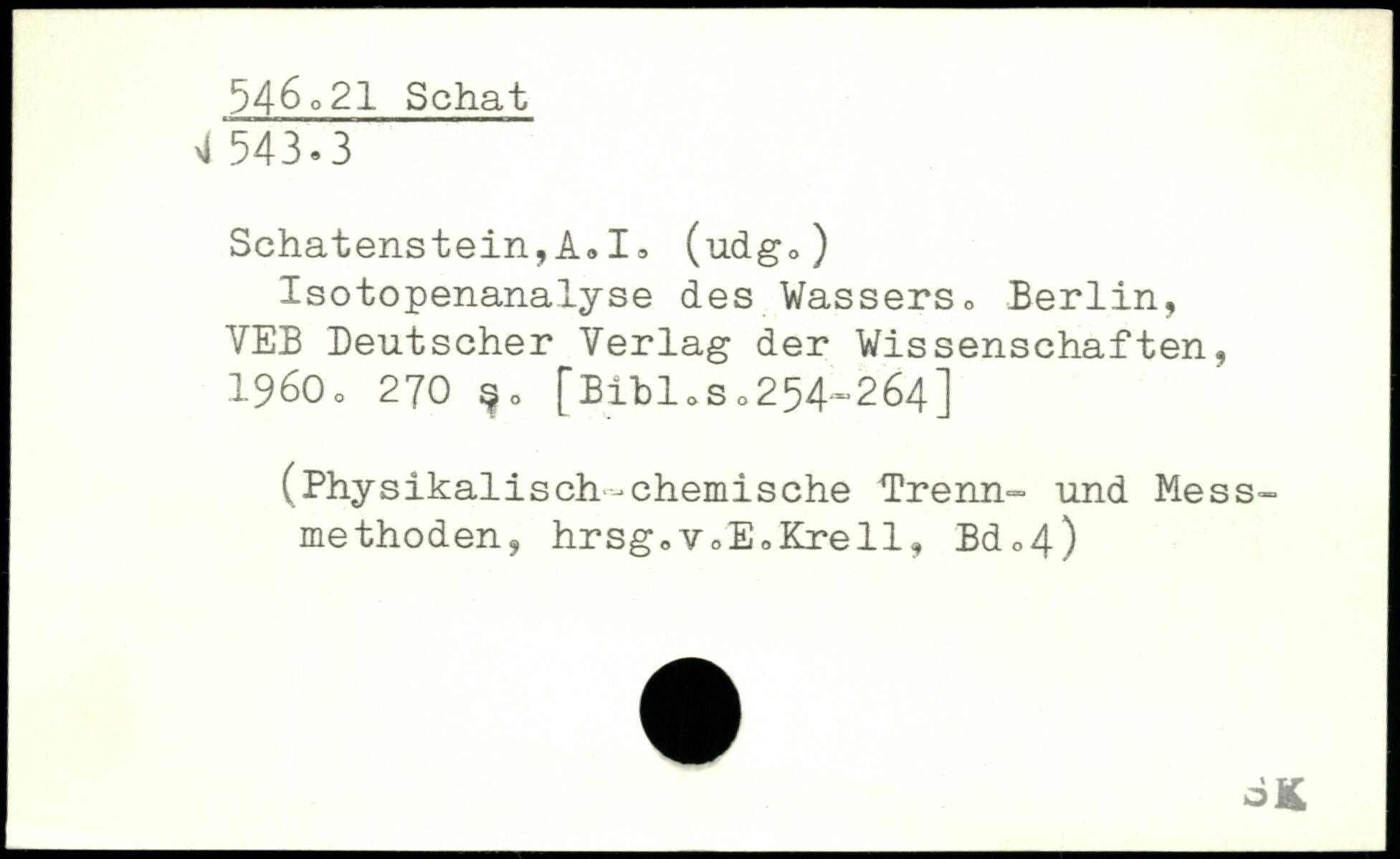 Schatenstein,A,I, (udgo) Isotopenanalyse des Wassers,, Berlin, YEB Deutscher Verlag der Wissenschaften, 1960c 270