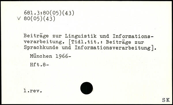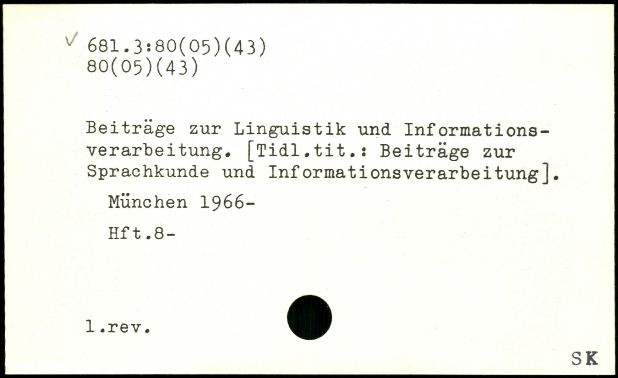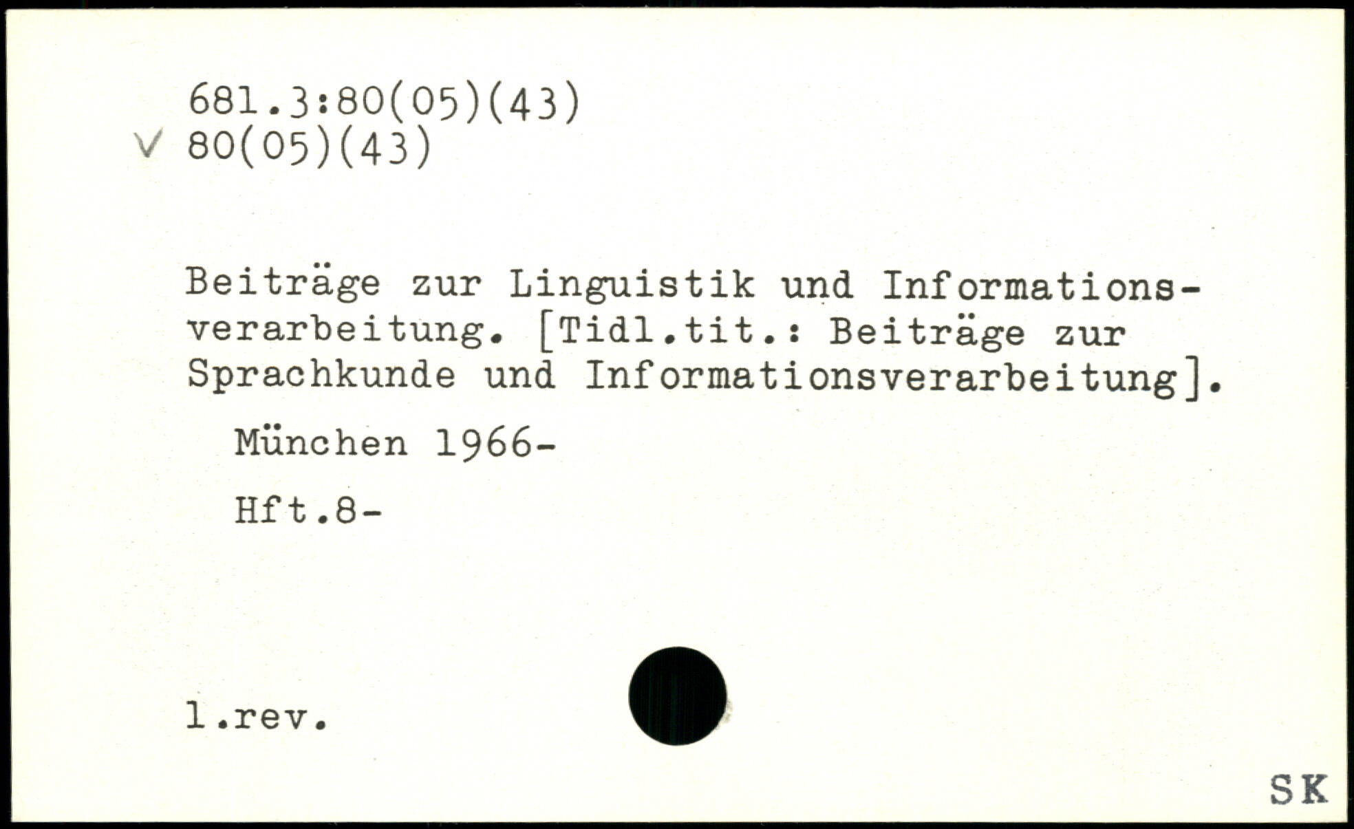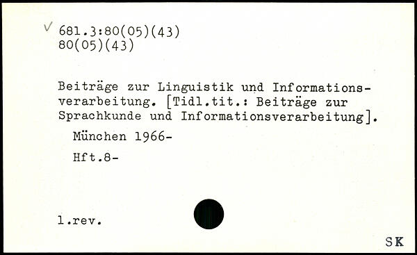 Beiträge zur Linguistik und Informationsverarbeitung. [Tidl.tit.i Beiträge zur Sprachkunde und Informationsverarbeitung].